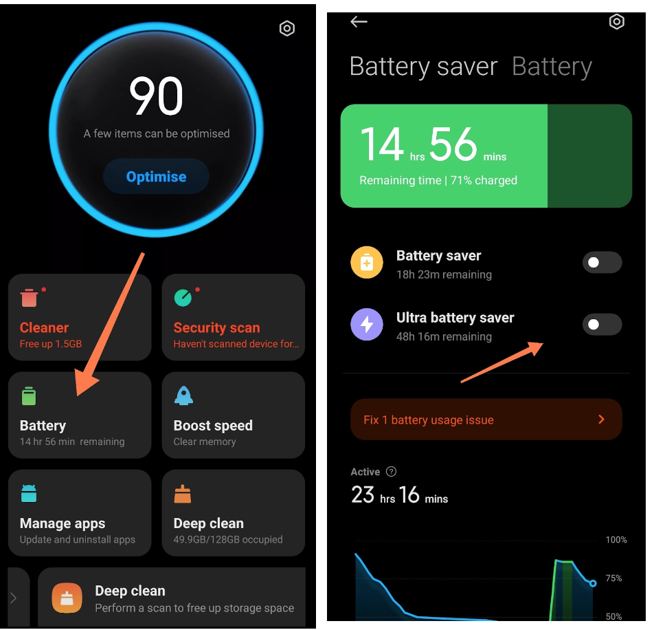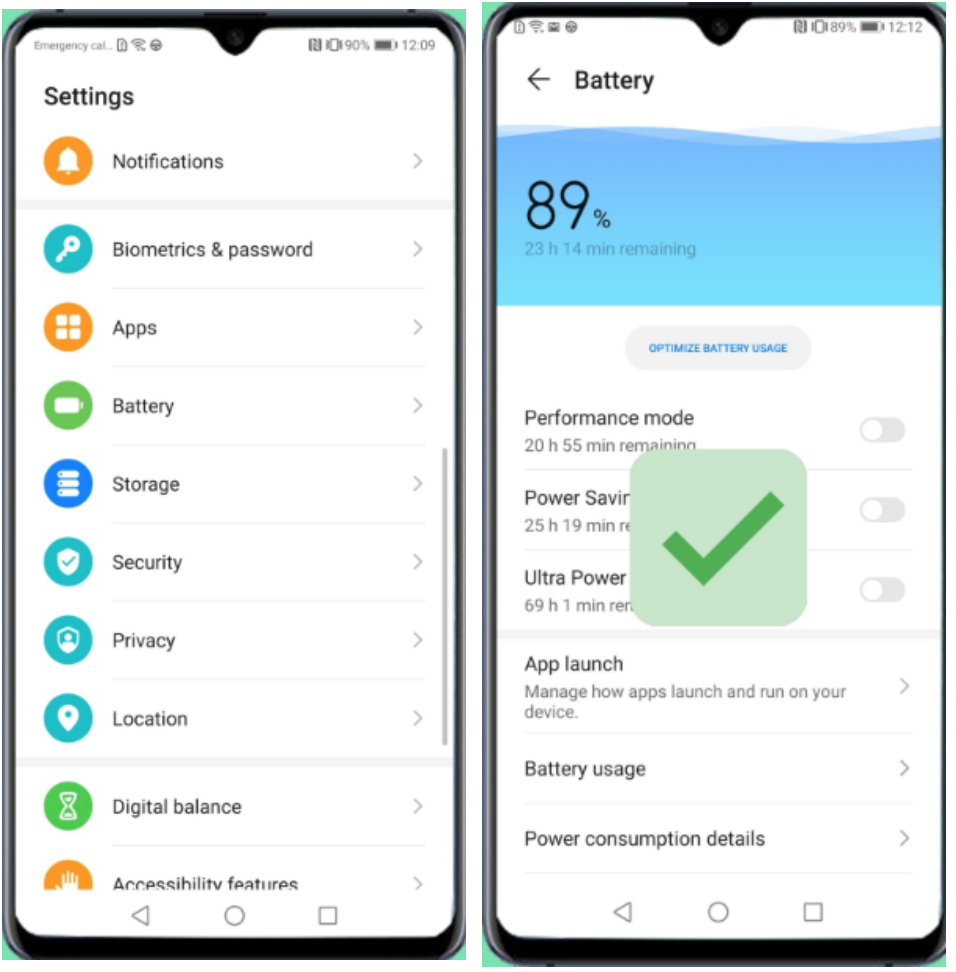 Wyłącz Oszczędzanie baterii i Ultrafunkcję oszczędzania baterii.